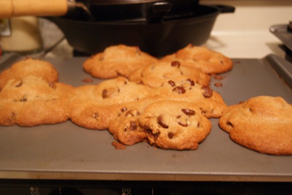 Chocolate Chip Cookies That Will Eventually Harbor Fugitive Oreos* (makes 9 cookies)