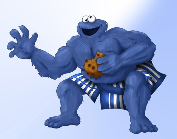 Right, so, as you can see, these cookies spread a little bit. More like a lot. Basically, don’t be like Shibow, sloppily plopping jumbo monster cookies haphazardly onto a baking sheet. Leave a bit of space so that you don’t end up needing to use your awesome skull spatula, given to you by a lovely and deeply-missed former coworker named Julie (thankyouthankyouthankyou!), to wedge these apart.