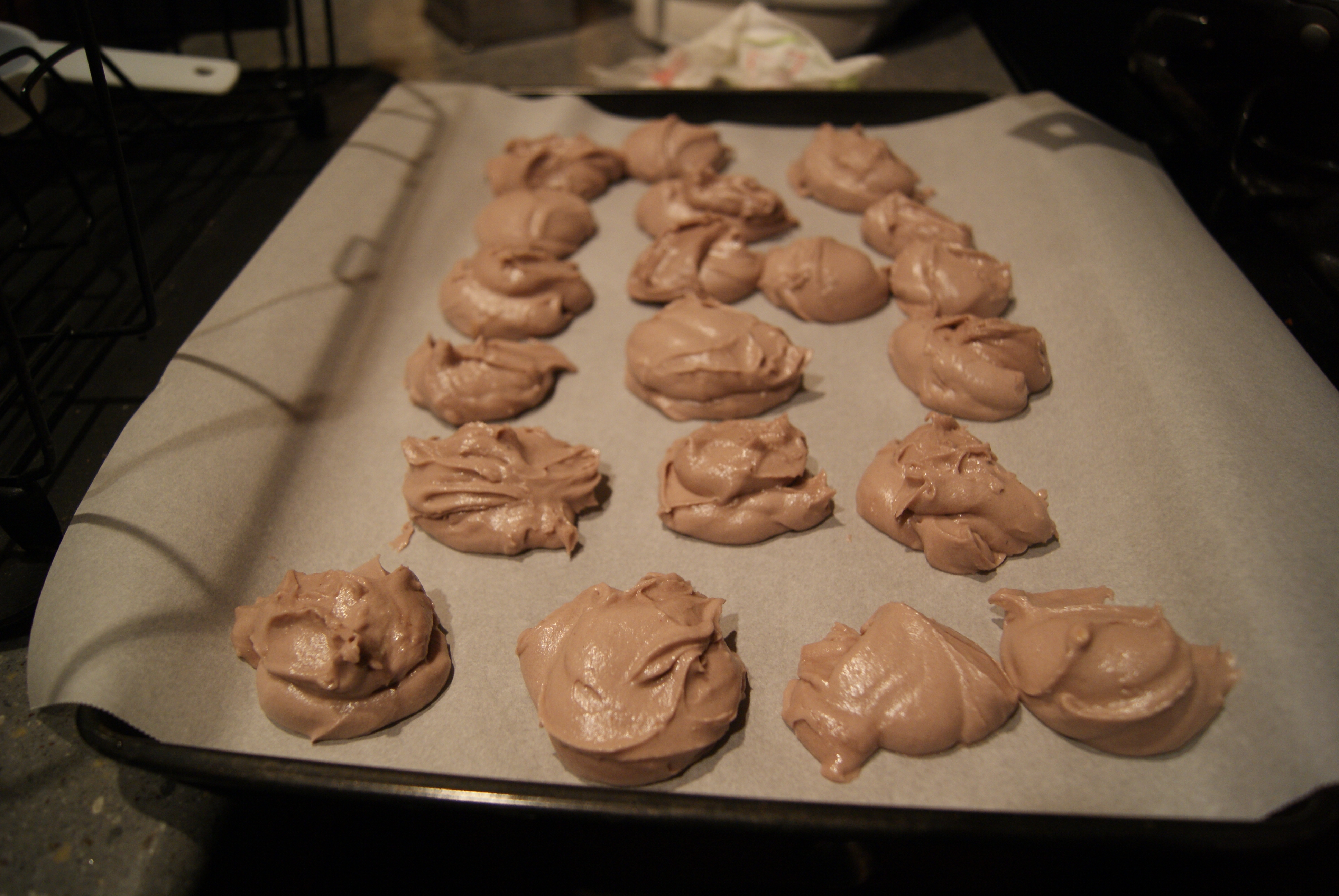 Line baking sheets with parchment paper, then drop small tablespoonfuls onto the sheet, about an inch apart, as these will spread a bit.