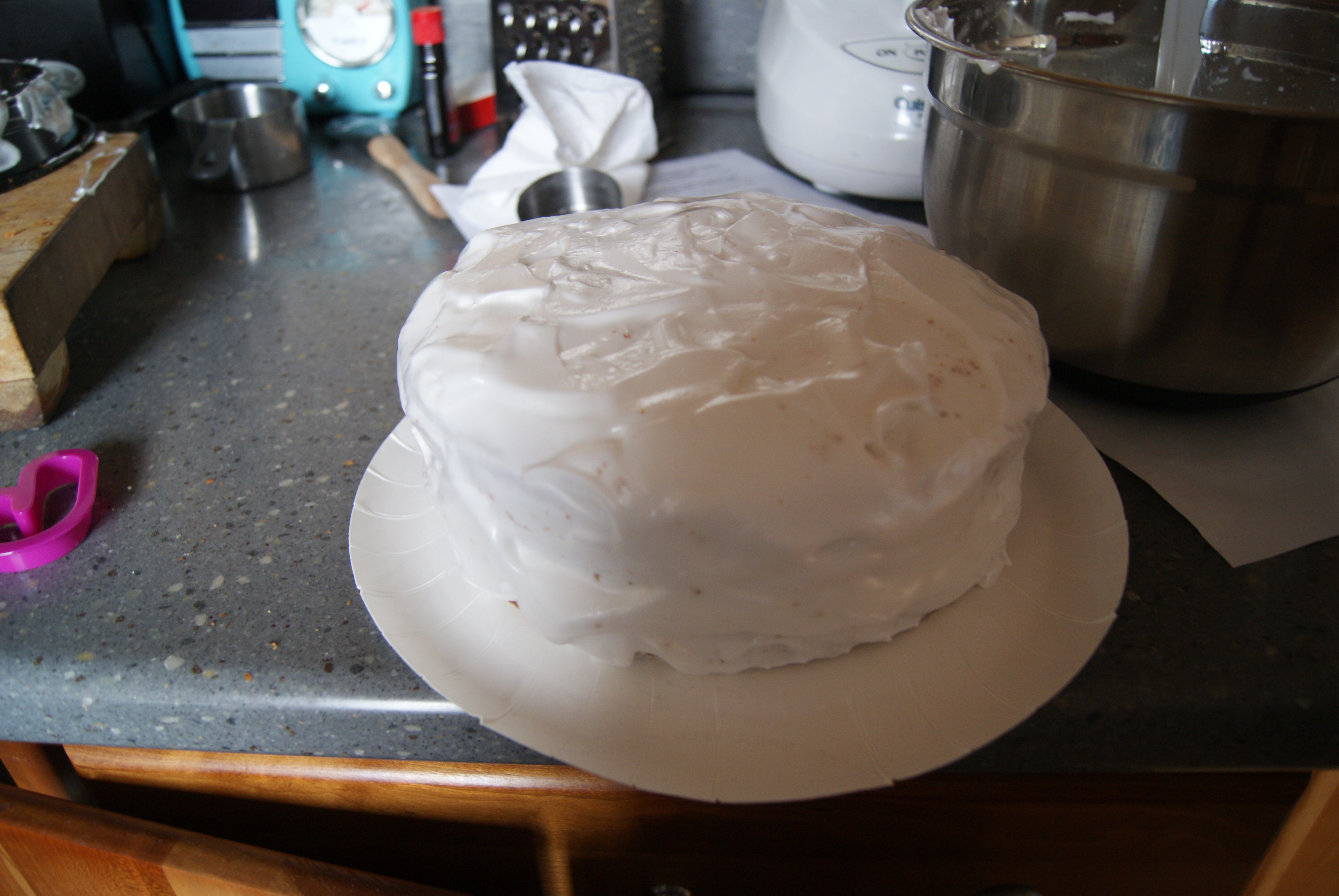 Lemon Layer Cake with Marshmallow Frosting (adapted from here and here)