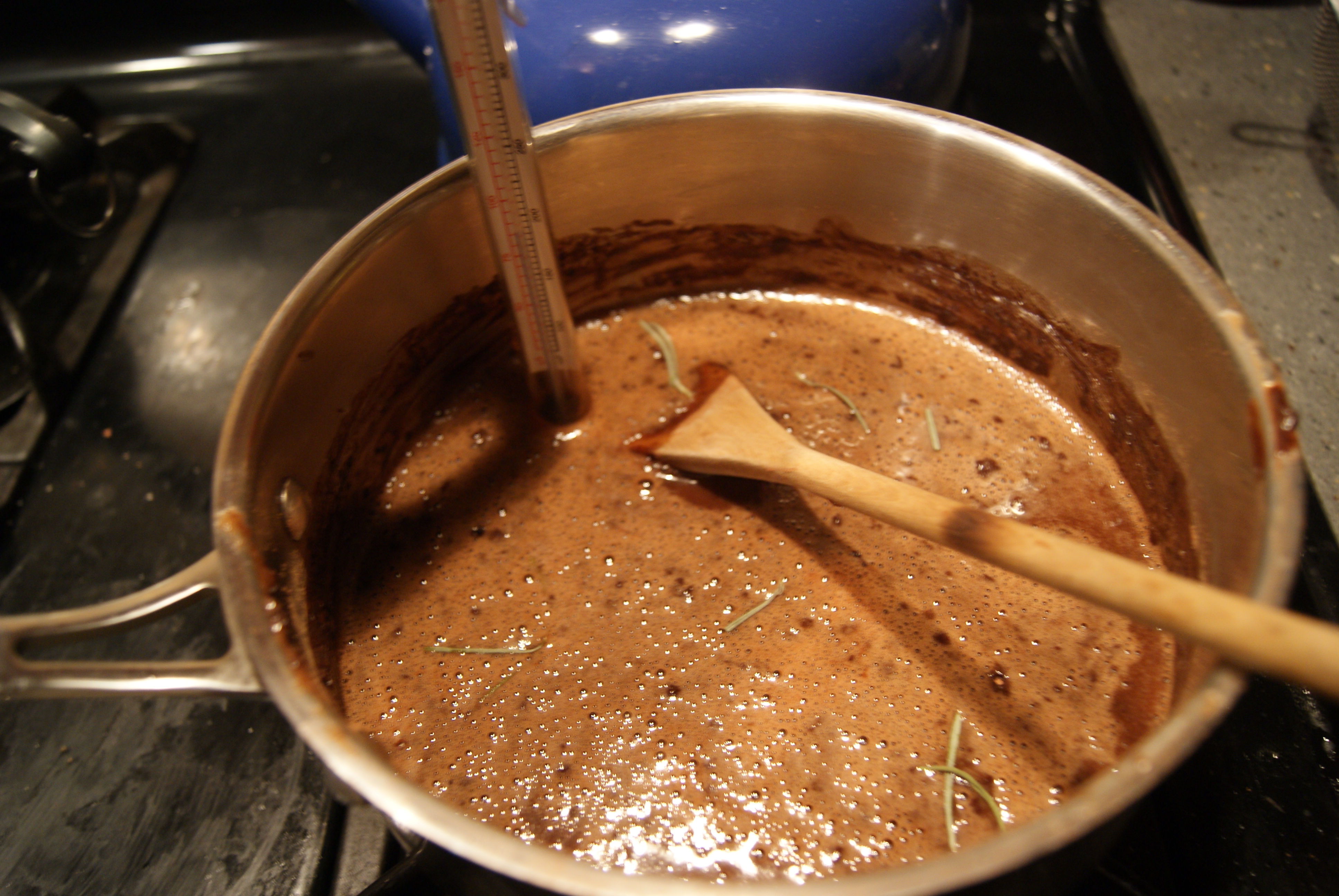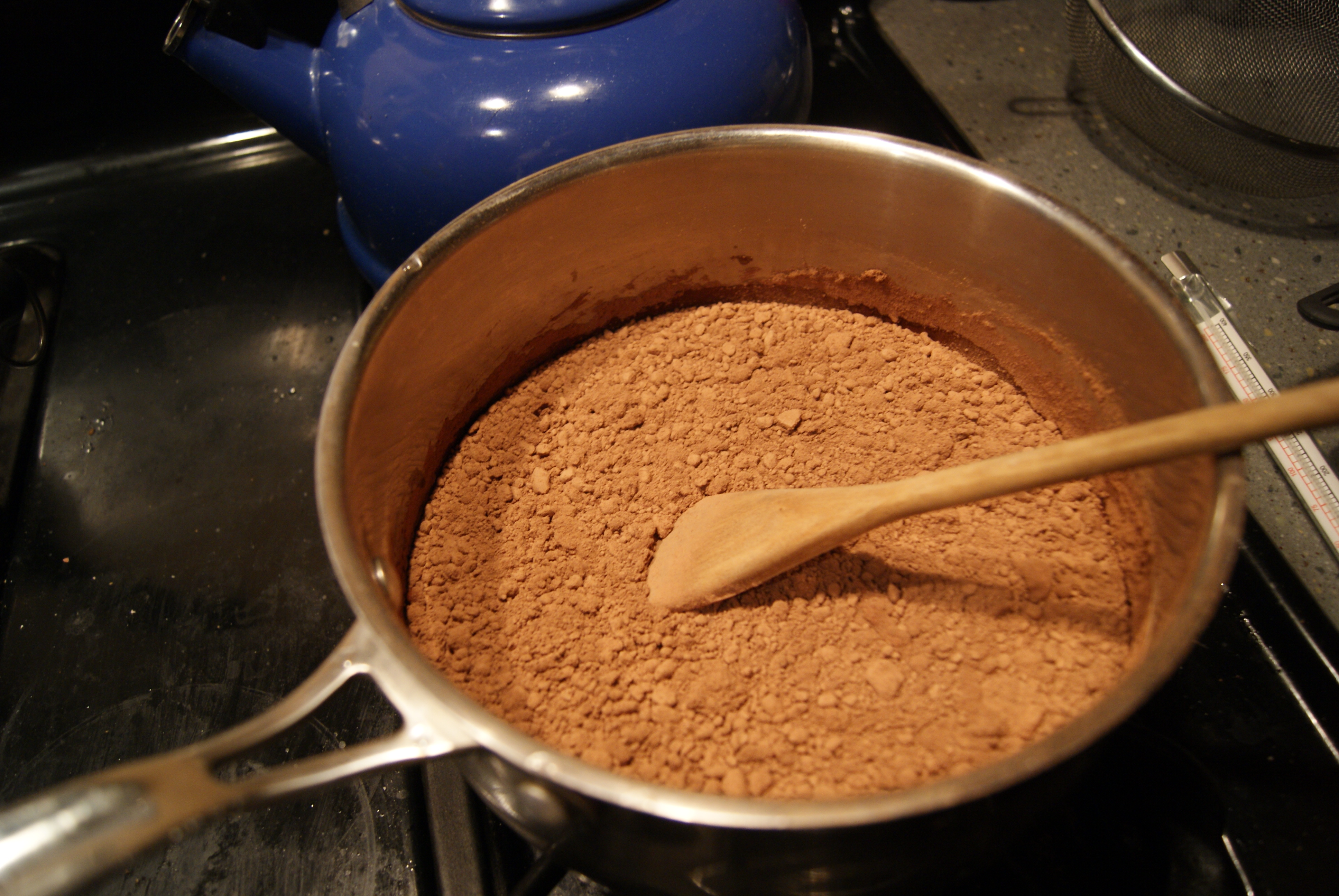 4 ounces of unsweeted baking chocolate, chopped, or 2/3 cup of cocoa powder (I used cocoa)
