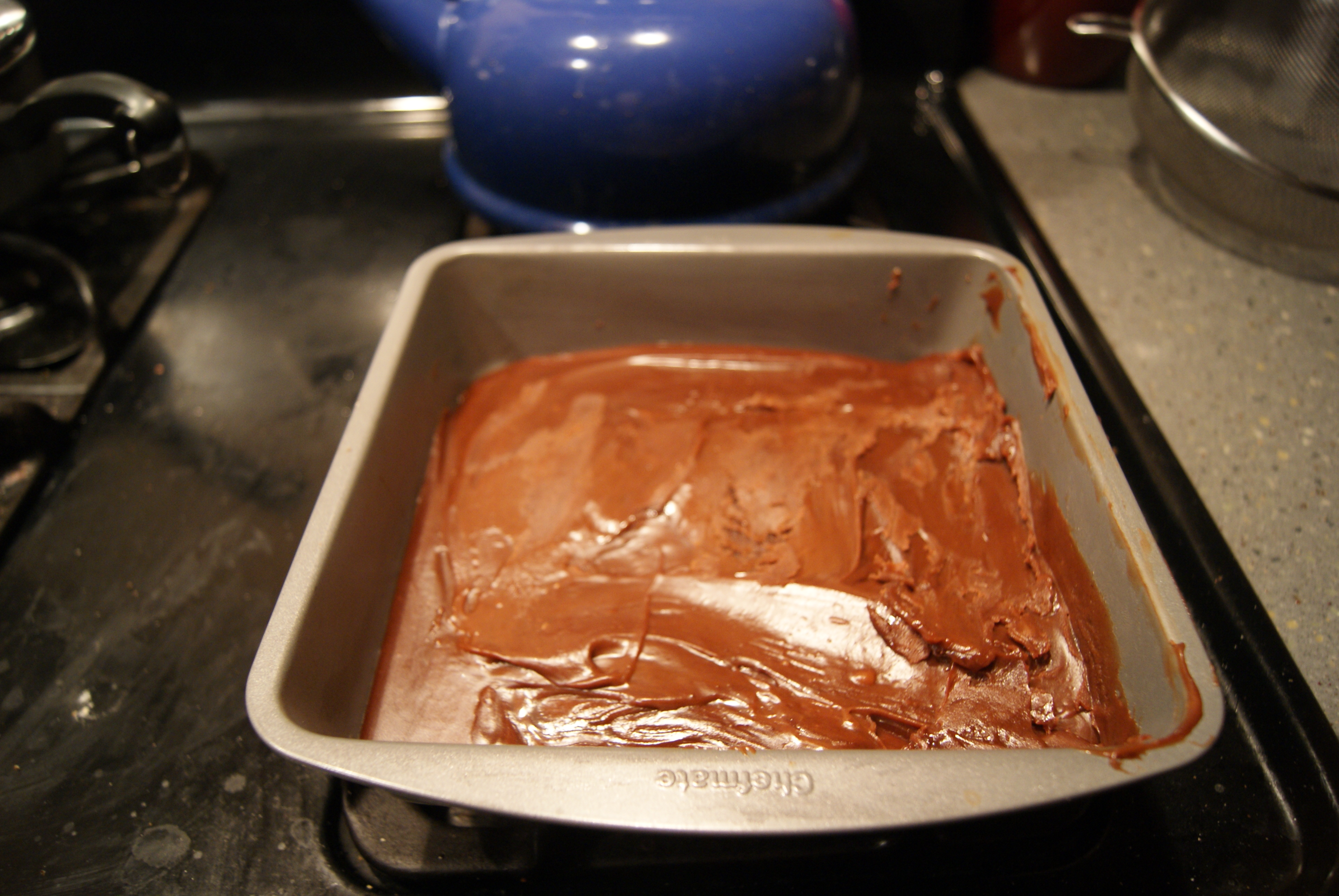 Spread evenly in pan and let stand until firm, about 1 hour.