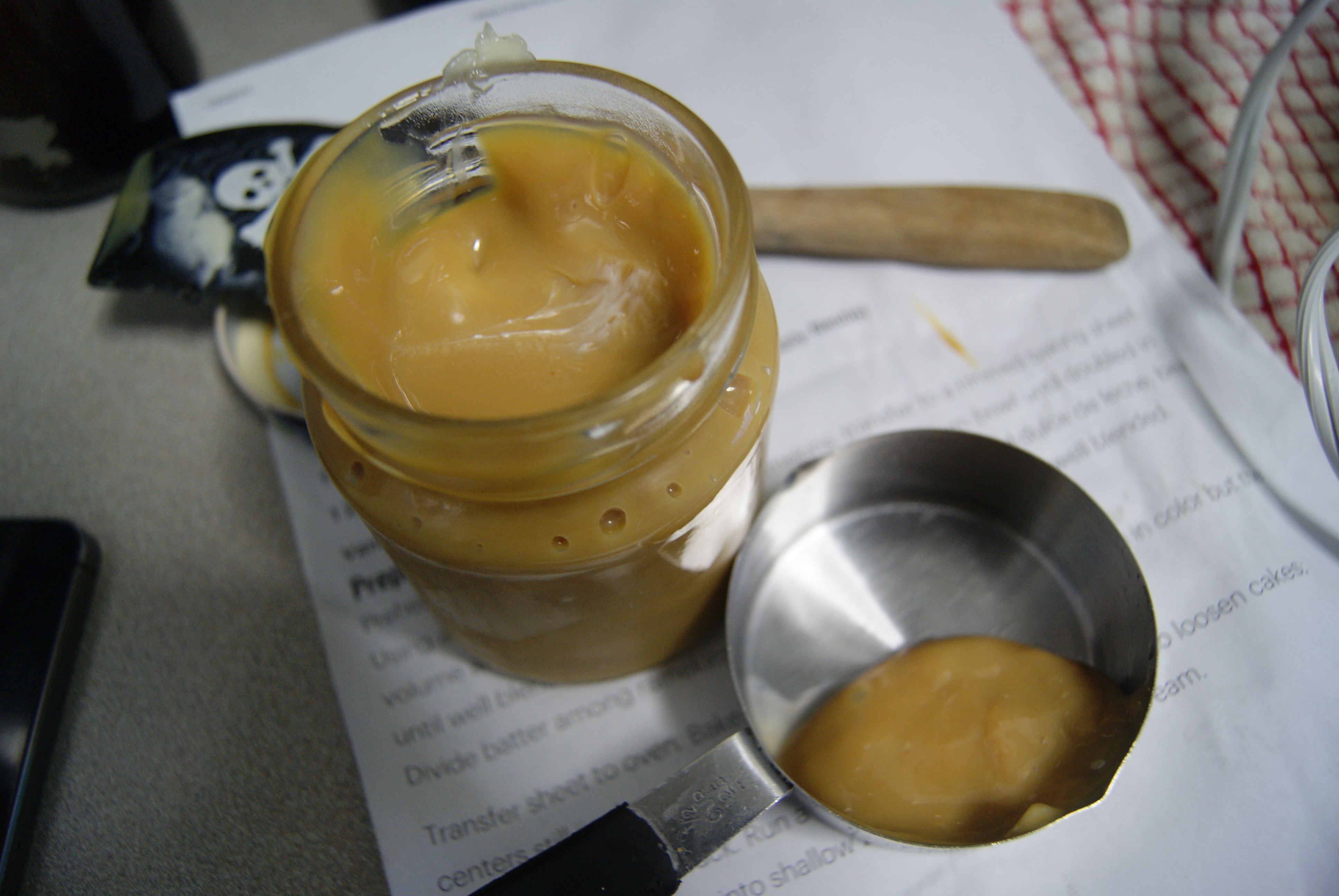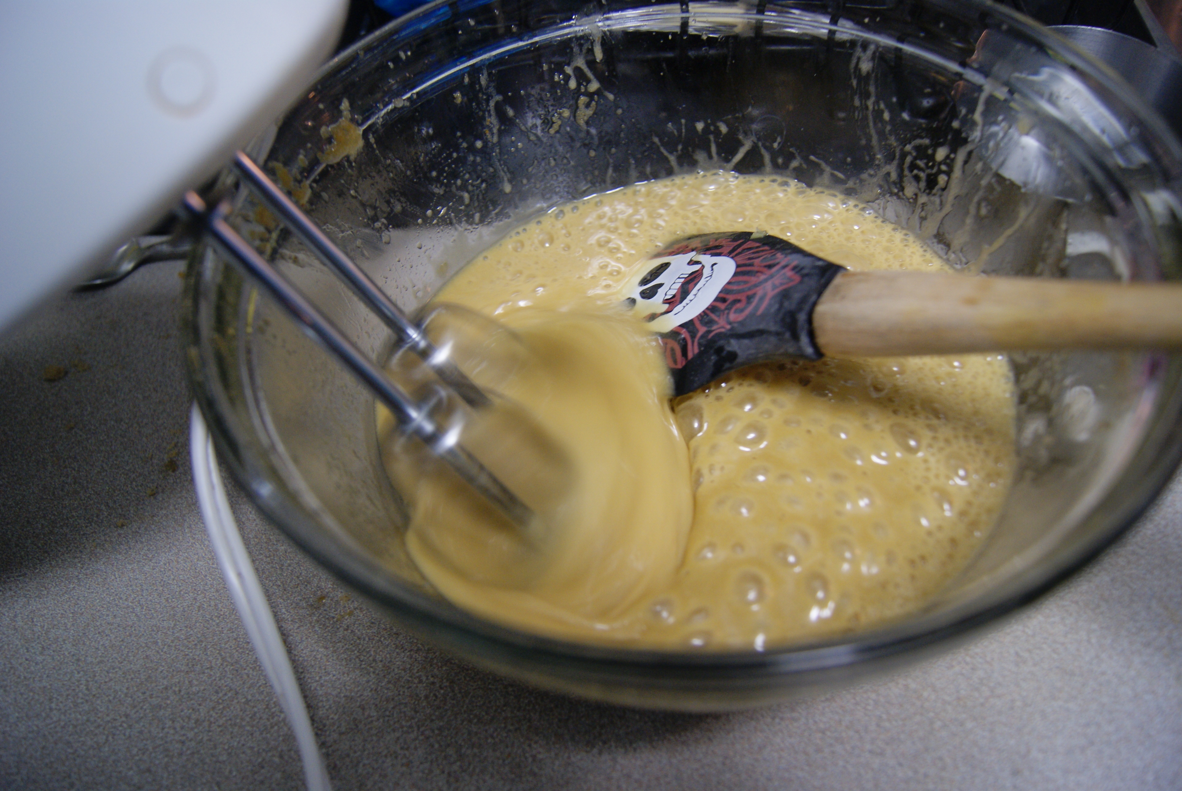 Let’s work on our brownie layer next, since the oven is already on and we’re the kind of people who want our cake, want it now, and are slightly, disturbingly obsessive about the goals we make when the goals we make are cake-related. Preheat the oven to 325°F this time, and wash out that large bowl you used for the cookie layer, because you’re gonna need it again (fancy rich folks, sure, use another large bowl, whatever, not even bitter at all about it, kudos for making all those good life choices). Cover the bottom and sides of an 8×8 round cake pan with foil. Combine cocoa powder, butter, sugar and salt in bowl and sift together until lightly mixed. Heat in microwave for up to a couple of minutes, stopping every 30 seconds to stir everything together (alternatively, you can set this over a simmering pot of water as long as you’re not accident prone, which is to say, as long as you’re not me). You can stop when it’s warm but not hot and appears grainy. Beat in eggs, one at a time, with a wooden spoon, until mixture takes on a nice sheen. Stir in flour and beat vigorously until you’ve got yourself a gorgeous batter. Send into the oven for 20 to 25 minutes, until the top is set and a cake tester comes out with just a few delectable crumbs on it (that you will not immediately lick, for you have manners and know the dangers of Licking Hot Things. It’s late guys. I’m well aware of how accidentally dirty this whole post is, and IDC). Let cool completely before removing from foil and pan.