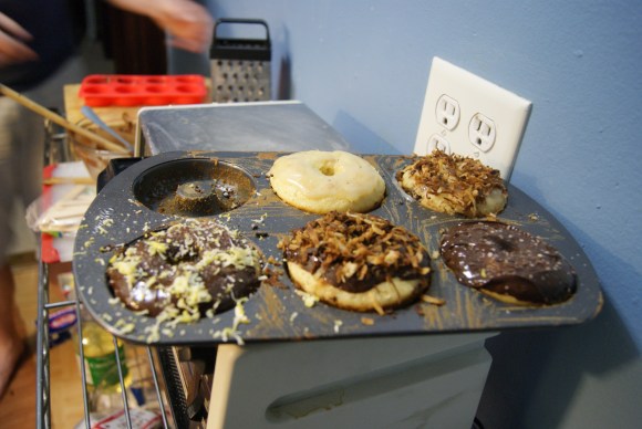 Edit: I realize I was fretting so much over telling that story about the weird party I went to that I forgot to tell you all how awesome these wonuts were. You would think they’d just taste like waffles, but NO! The olive oil gives them an interesting little kick, and they actually taste like doughnuts somehow. I couldn’t decide which ones I liked more, but I will say this: the lemon rosemary wonuts were more of a breakfast treat, while the chocolate sea salt wonuts seemed like more of a dessert to me. And yes, to answer your inevitable question, I will begin work on lunch and dinner wonuts ASAP.